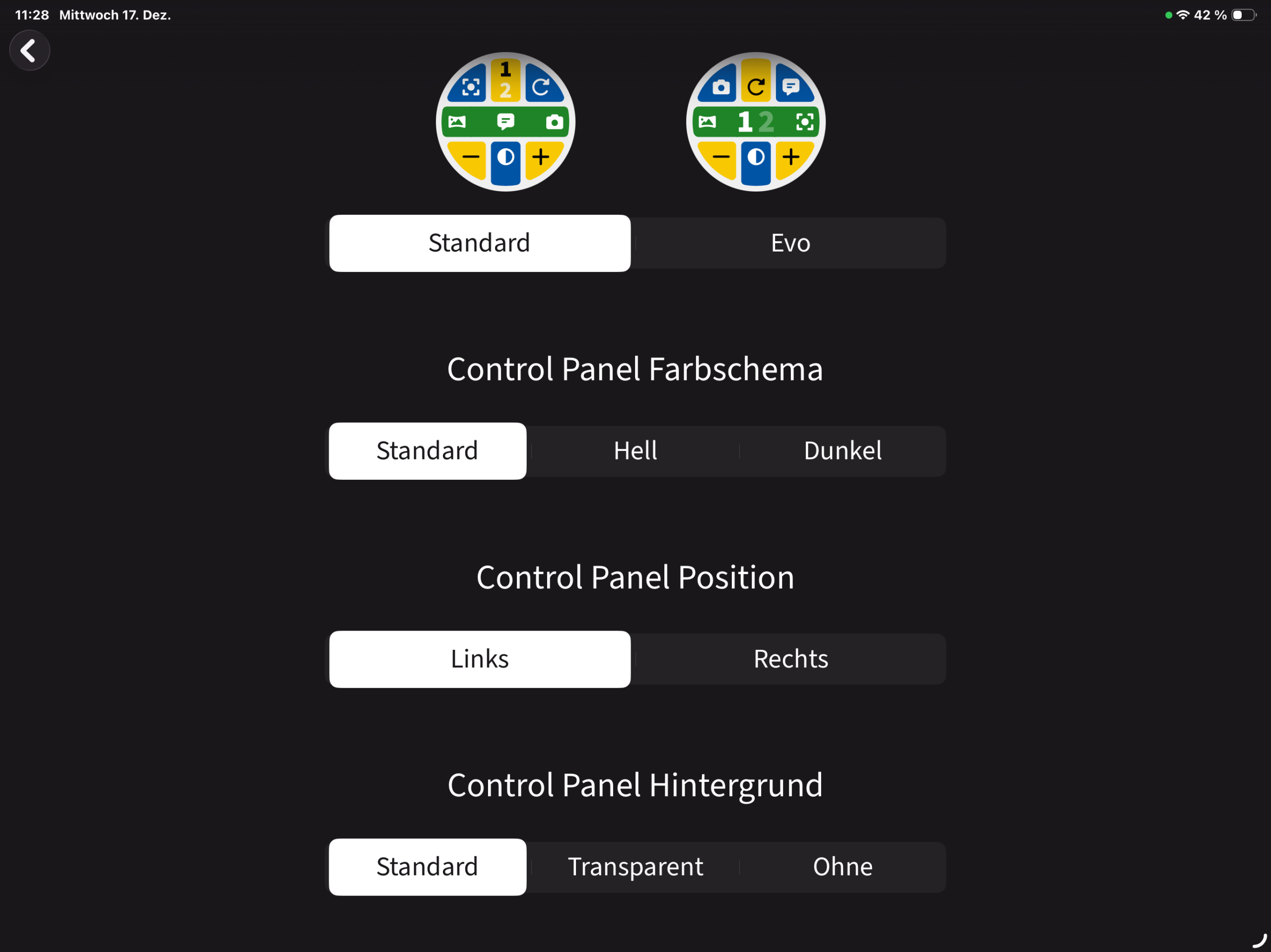 Das Bild zeigt einen Menüteil der steller MyVision App - Hier können Einstellungen z.B. zur Darstellung der App, etc. eingestellt werden